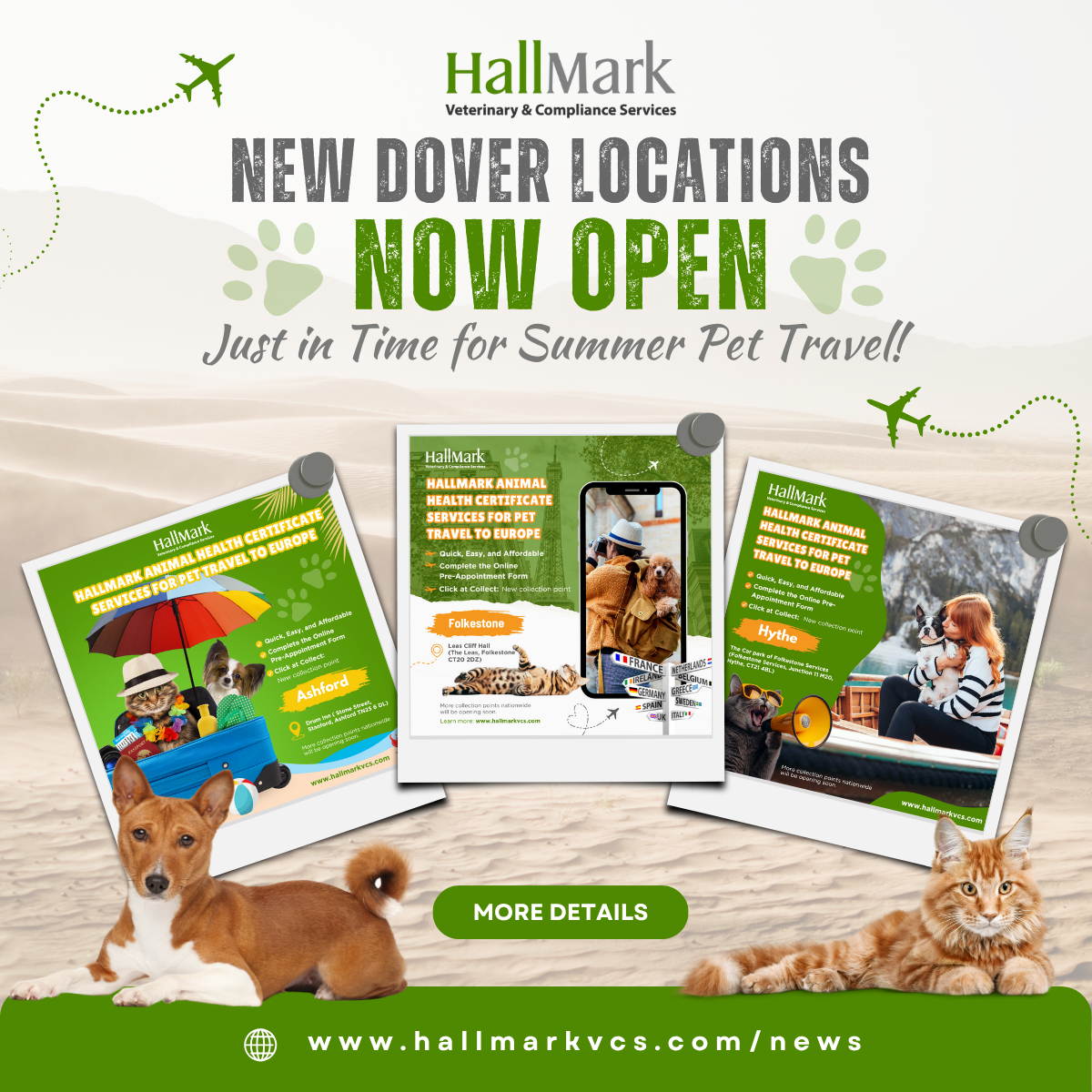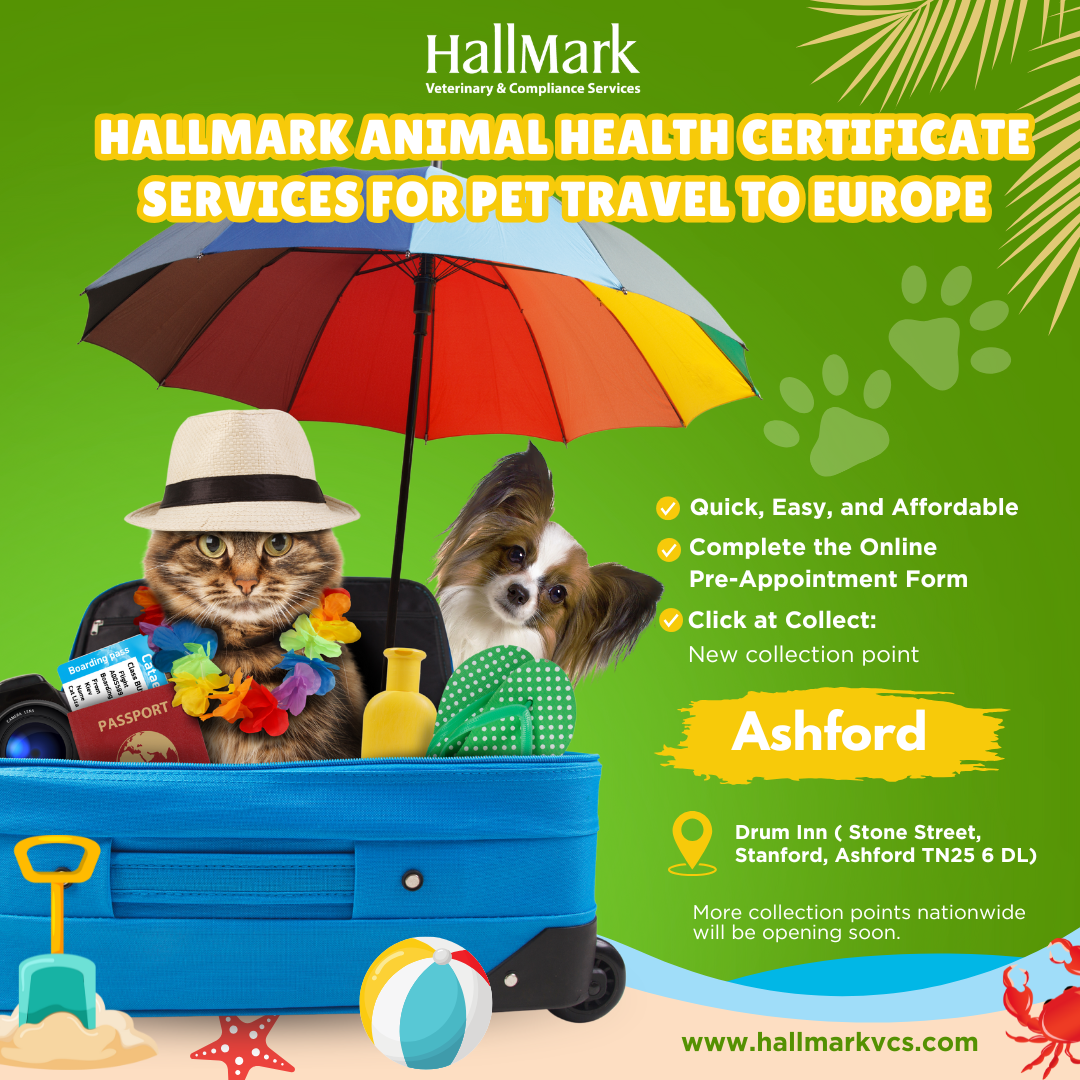 HallMark Veterinary and Compliance Services is excited to announce the launch of three new Animal Health Certificate (AHC) collection points in the Dover area, strategically positioned to make pet travel to the EU easier and more convenient than ever.