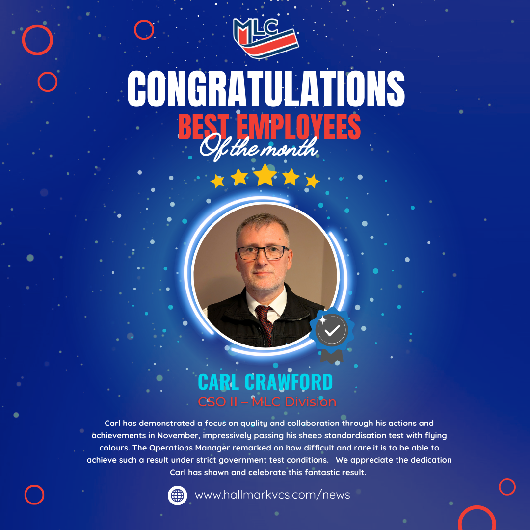 Carl impressed the MLC leadership this month with his commitment to quality and his steady, collaborative approach to work. In November he passed his sheep standardisation test with outstanding results, a success that is rare under the strict conditions of a government examination. This achievement speaks to Carl’s discipline and determination, and we are extremely proud of the standard he continues to set. His hard work strengthens both our service and our team.